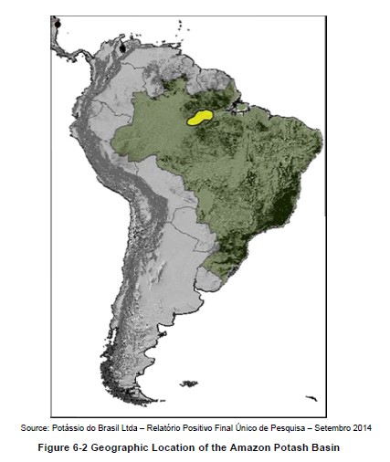 The Autazes Project property is located in the eastern portion of the state of Amazonas, within the Central Amazon Basin, between the Amazon River and the Madeira River, approximately 120 km southeast of the city of Manaus, northern Brazil. The Company holds claims, with a cumulative area of approximately 1,443.10 km2 (144,309.93 ha), in the Amazon Potash Basin within which the City of Autazes is located. All mineral rights for the Autazes Project registered with the Agência Nacional de Mineração (ANM) in Brazil are held by Brazil Potash's majority owned local subsidiary Potassio do Brasil Ltda (PdB).